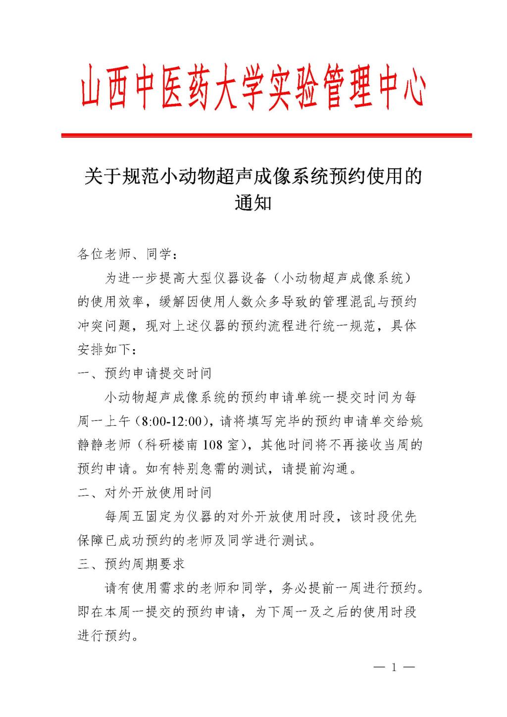 关于规范小动物超声成像系统预约使用的通知