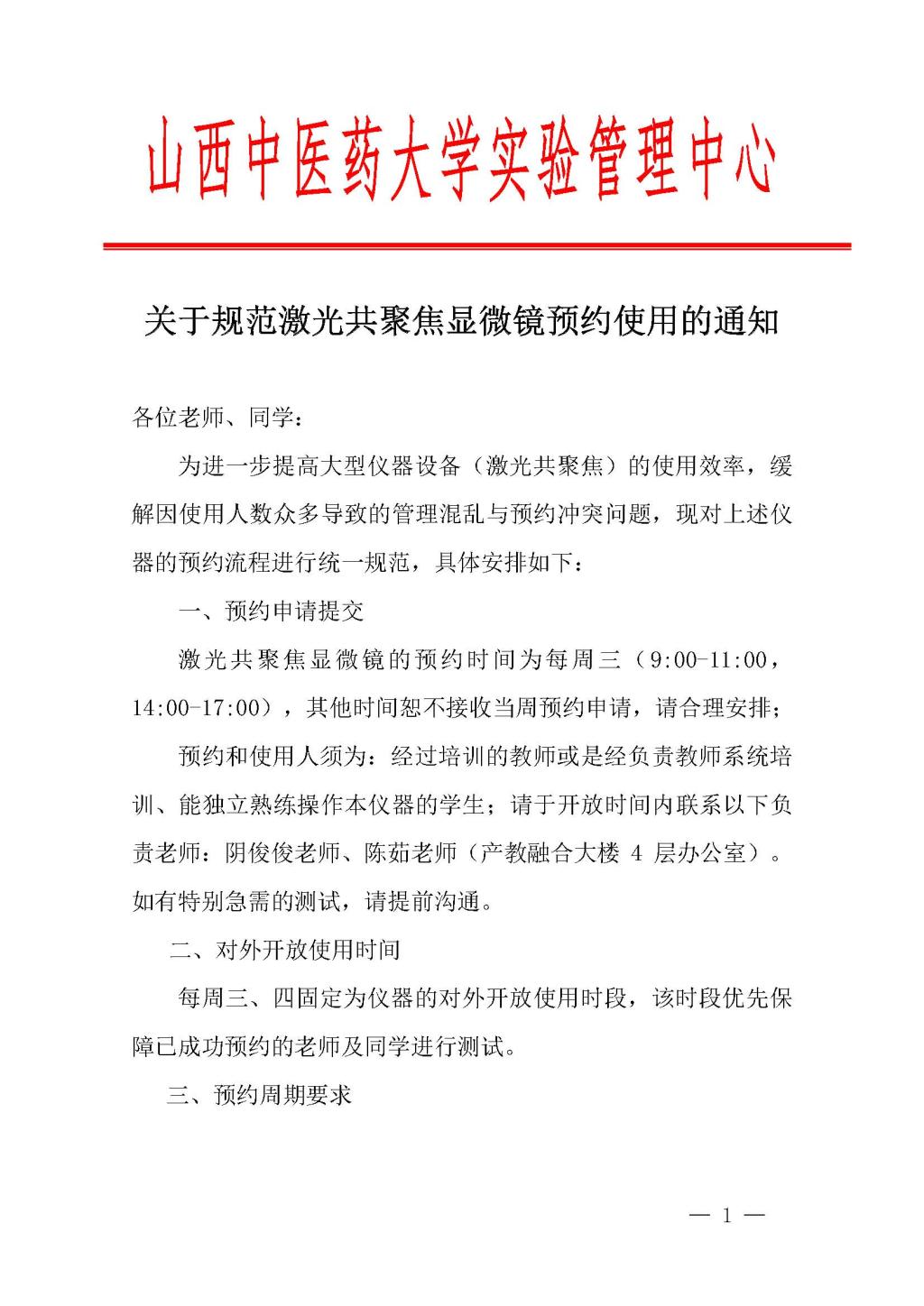 关于规范激光共聚焦显微镜预约使用的通知